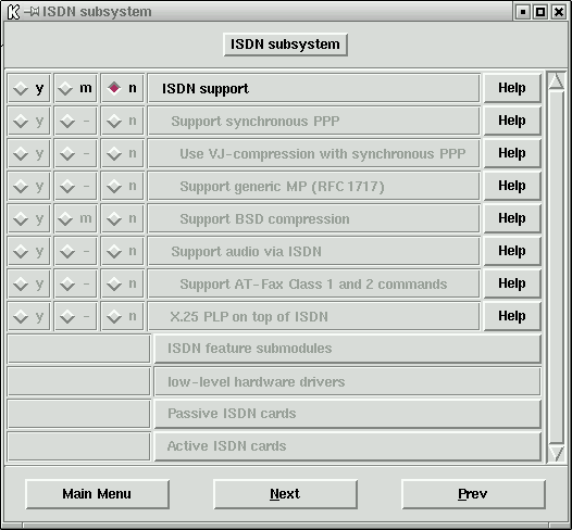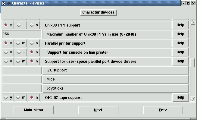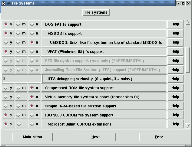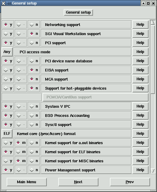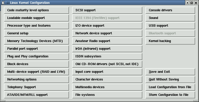 | Figure 1: | The graphical interface for defining your Linux kernel after the command 'make xconfig'. |