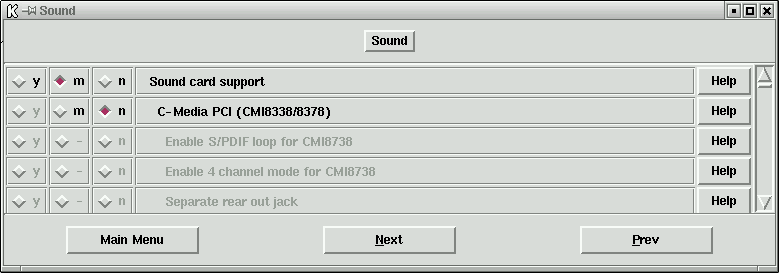 to select 'sound card support' as MODULE. The ALSA drivers are
